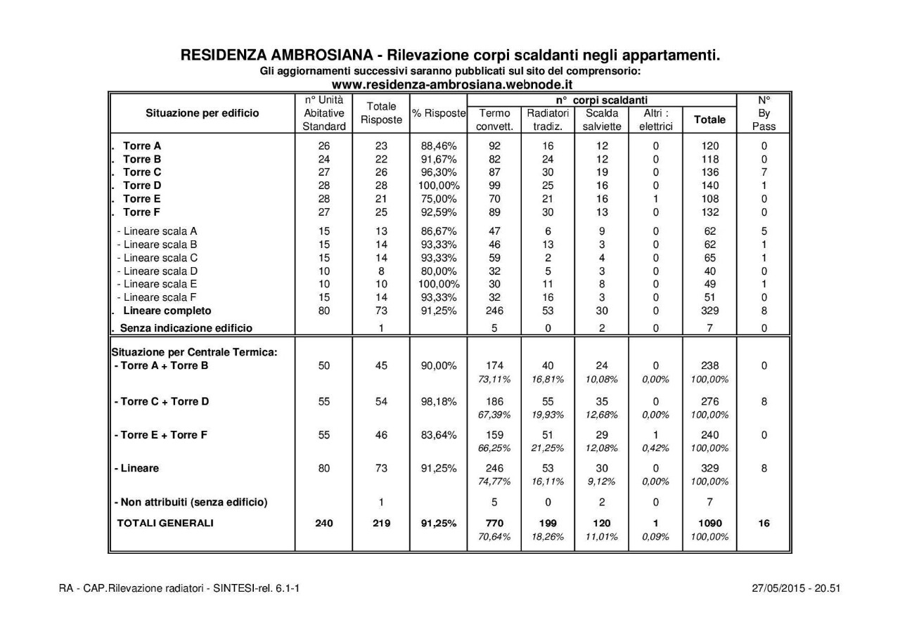Risultati dell'idagine sui radiatori